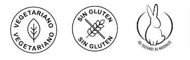 Libre de sulfatos, sal (NaCl), perfumes artificiales, parabenos, gluten y aceite de palma